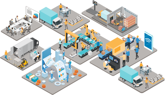 Gestión industrial, mantenimiento de activos, gestión de almacenes, comercialización de productos, enrutamiento de entregas por arreglo de carga y trazabilidad con monitoreo de entrega en tiempo real.